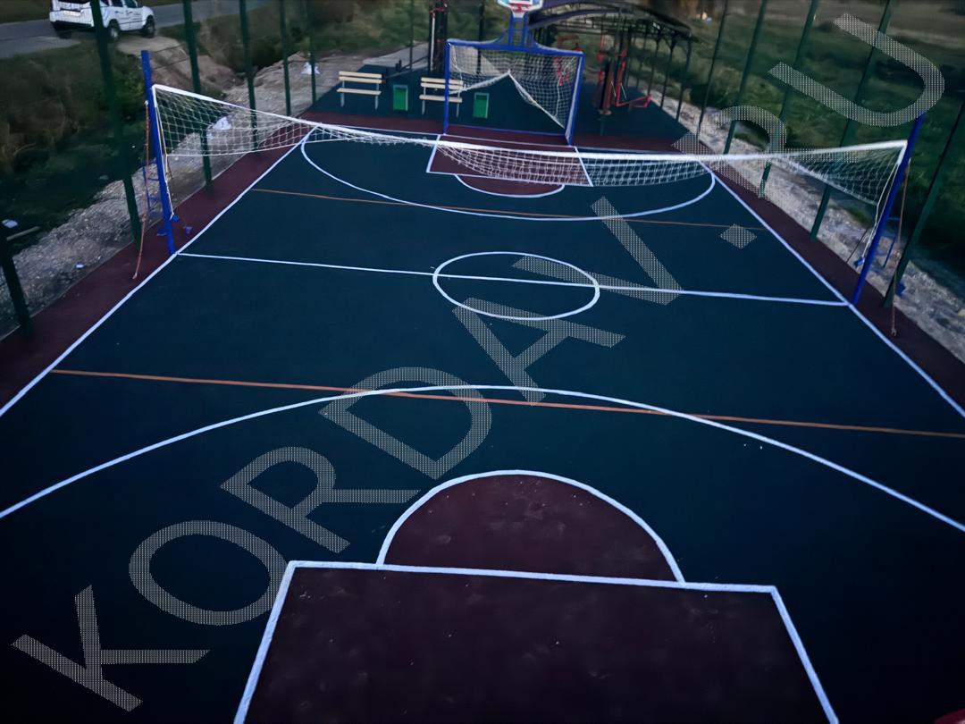 Совмещённые детская и спортивная площадки. Использовано оборудование: