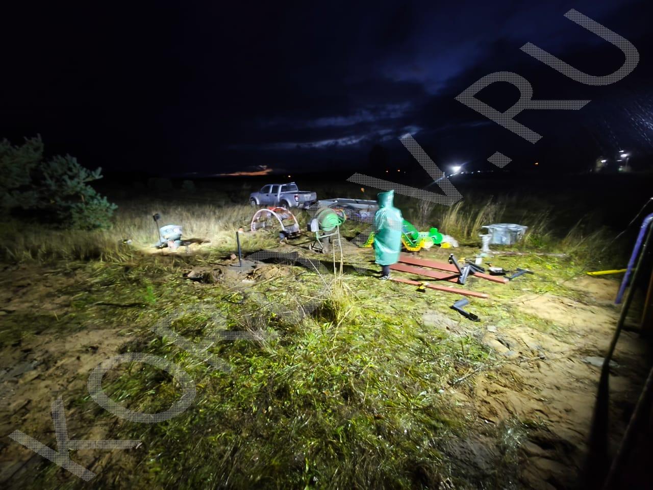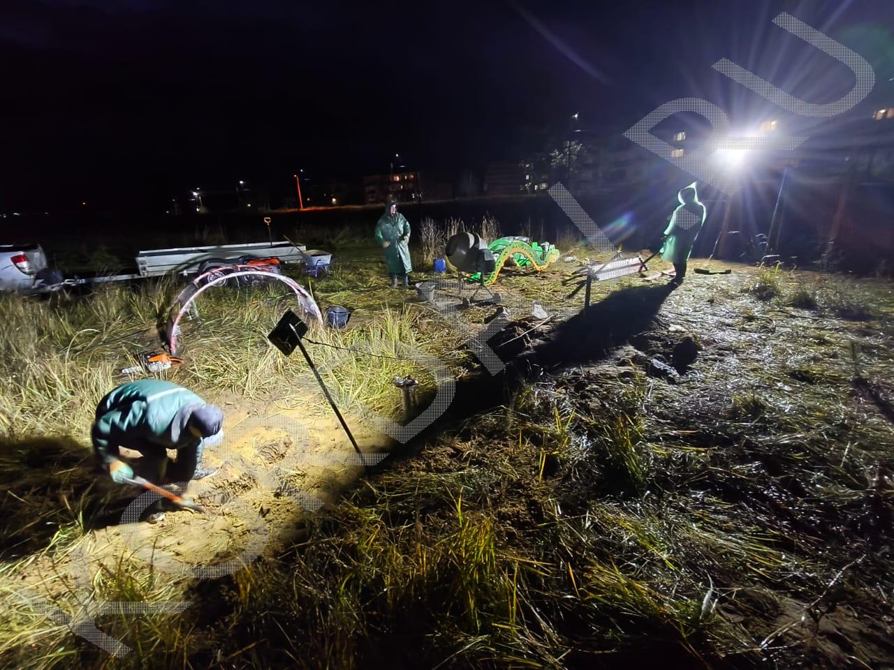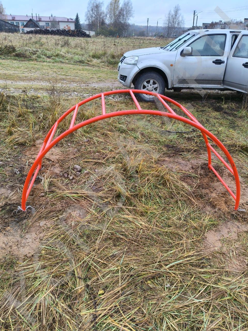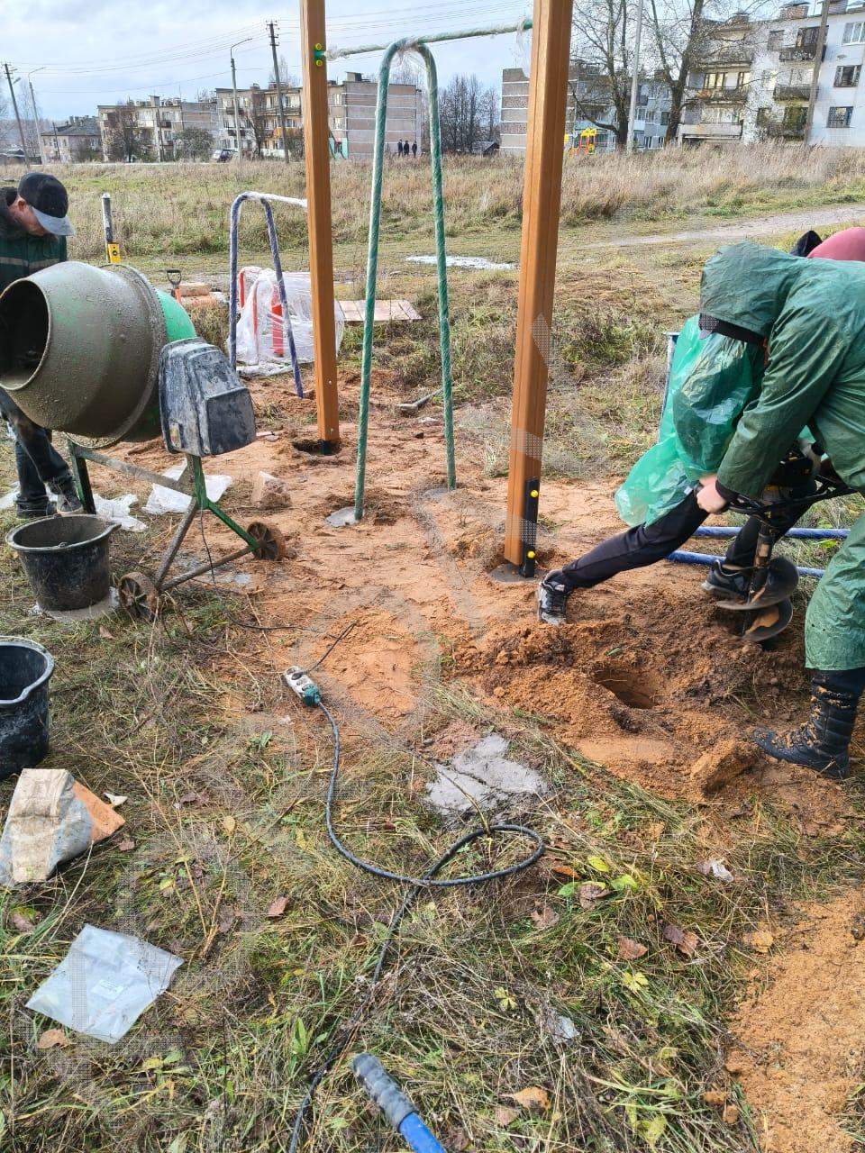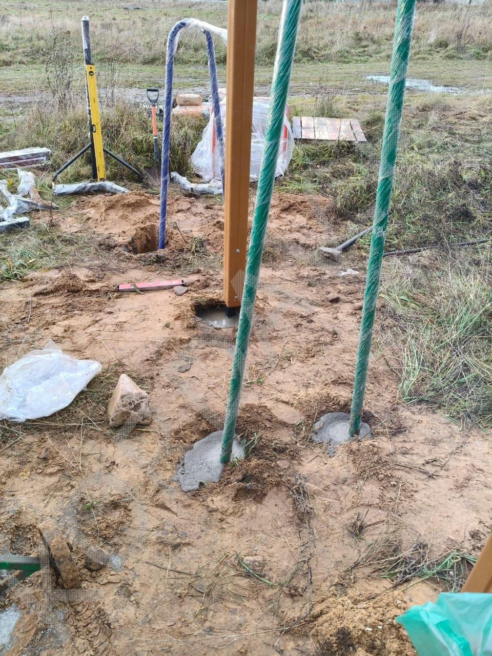 Процесс установки оборудования для детской площадки.